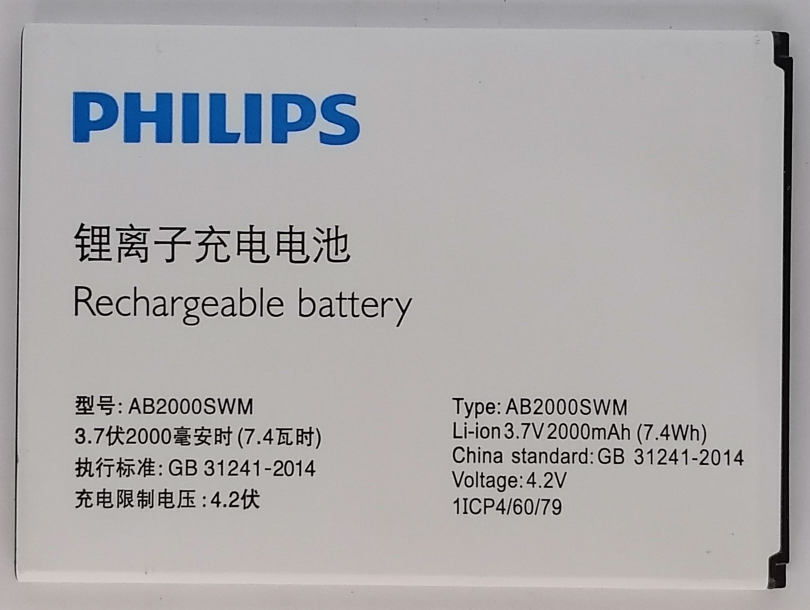 Аккумулятор для Philips X501, X513, X523, X130 (AB2000AWMC) (снятый, оригинал)